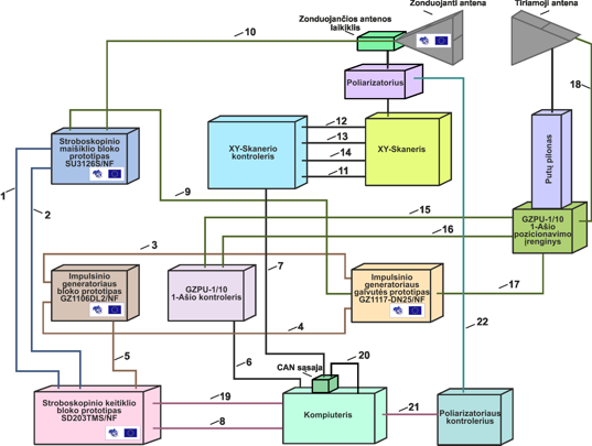 7–CAN kabelis; 8–LPT kabelis; 9, 10, 17 ir 18–SF kabelis